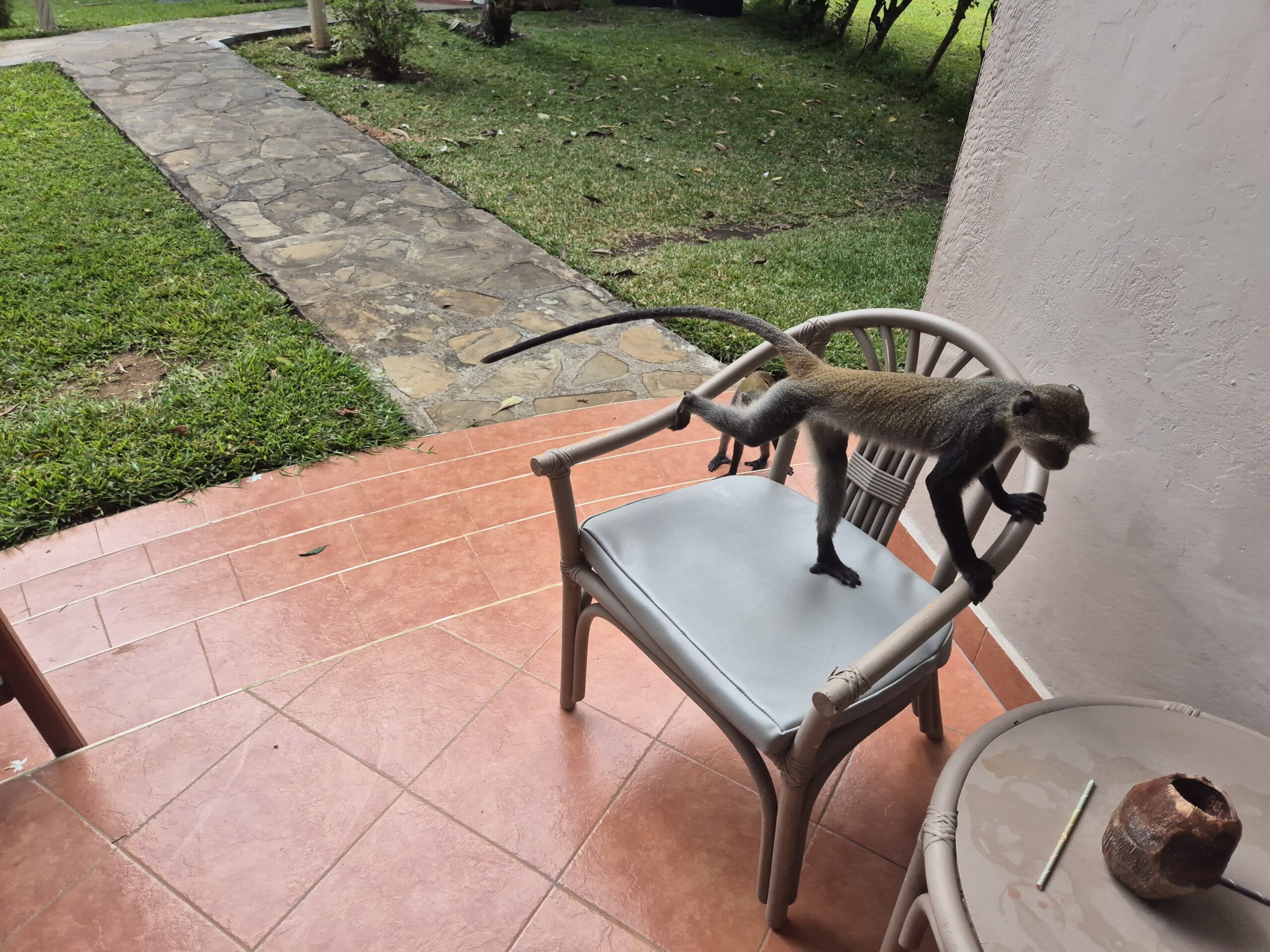 Samostatnou kapitolou jsou všudypřítomné opice, které jsou velmi zručné, ale dokážou být i velmi drzé. Na hotelu jsou opravdu všude. Můj první „konflikt“ s opicemi nastal, když jsem první den dopoledne na pláži zjistil, že jsem si zapomněl v koupelně na nabíječce telefon. Šel jsem pro něj a nechal otevřené dveře do bungalovu s tím, že ihned odcházím.