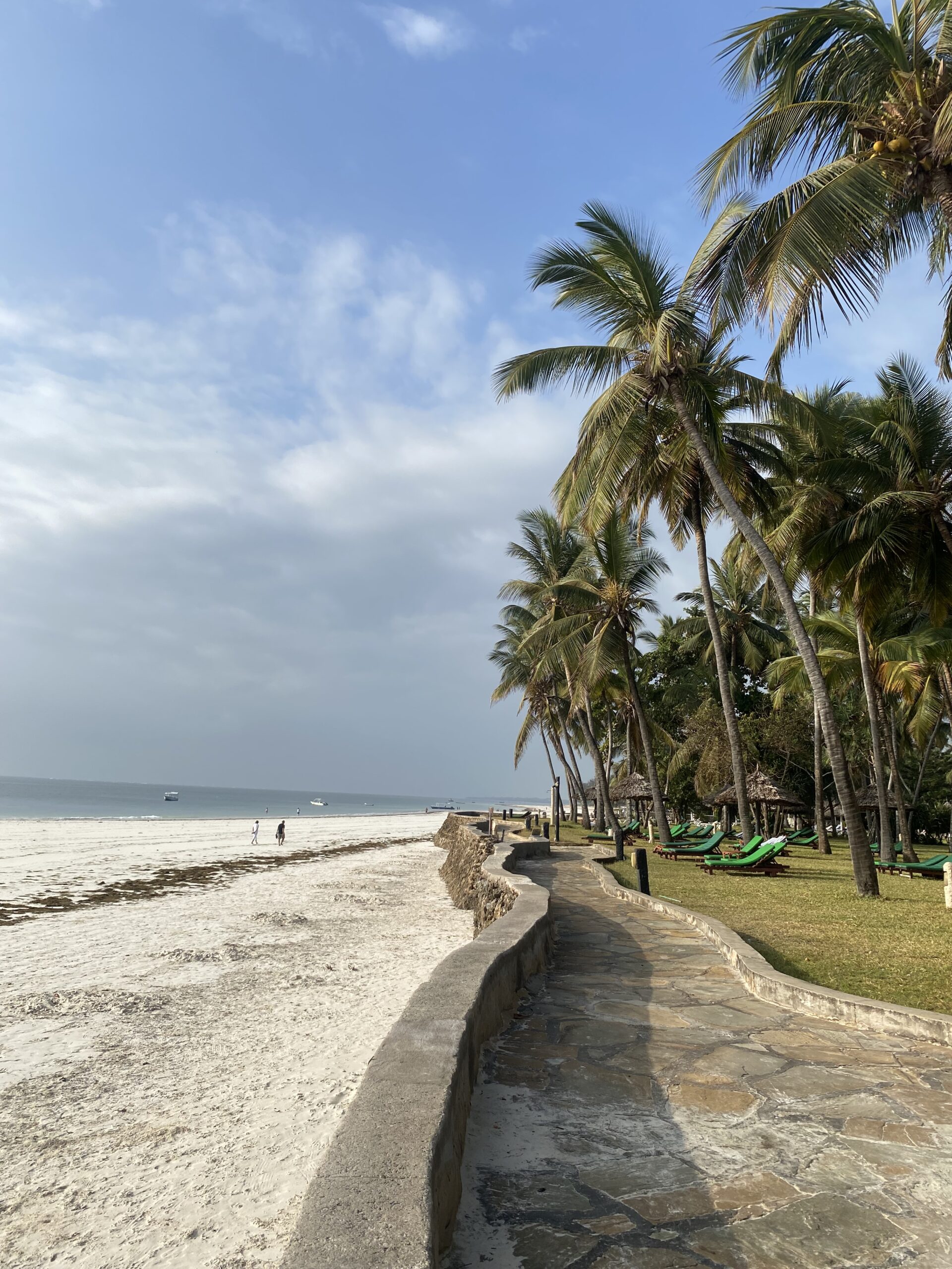 My jsme dopoledne většinou trávili relaxem na hotelu nebo procházkami po pláži, která je dlouhá několik desítek kilometrů. V nejbližším okolí toho jinak moc není – před hotelem je pár místních krámků a stanoviště tuk-tuků, kterými je možno za 600 keňských šilinků (cca120 Kč) zajet do nejbližšího města Ukunda, vzdáleného 12 km.