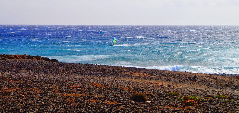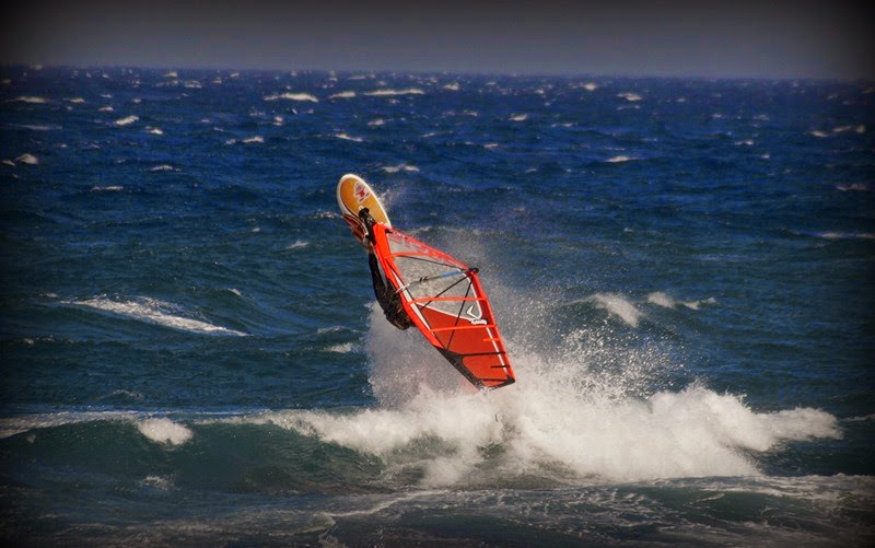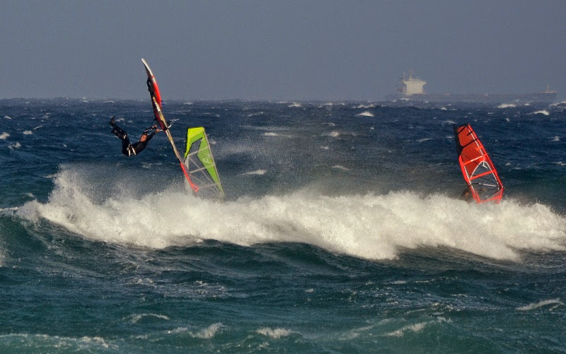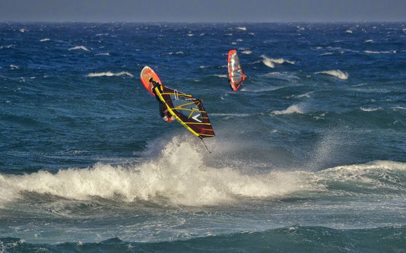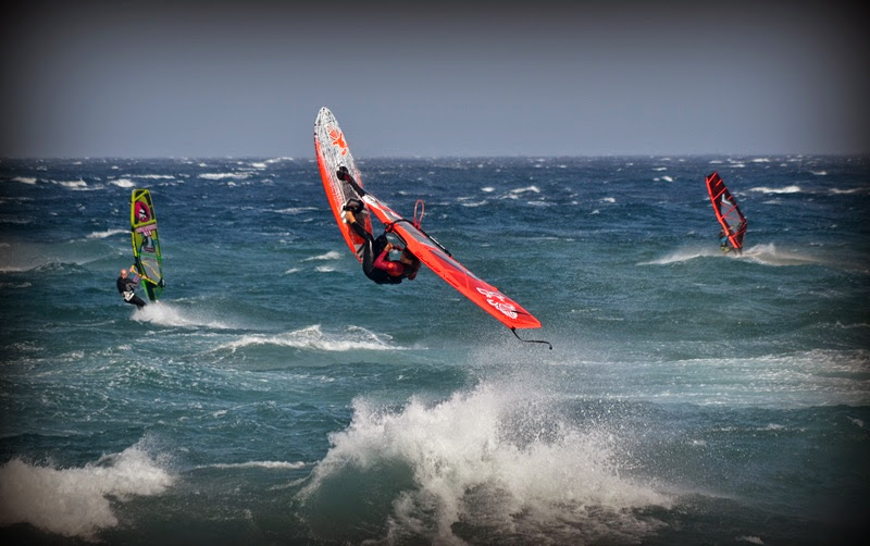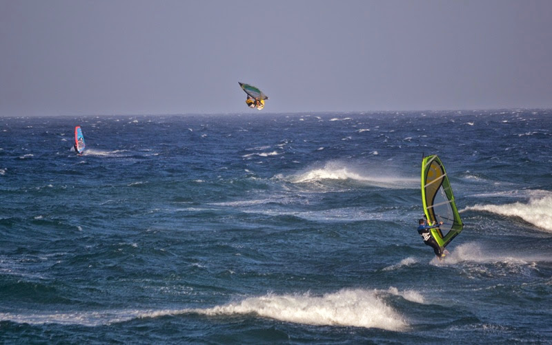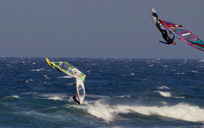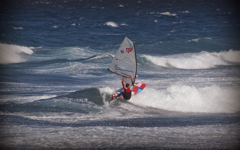 Naše obava z příliš silného větru se potvrdila po příletu a nejčastější plachty byly kolem 3.3 a prkna 70-80L. První den (středa) byl opravdu náročný po nočním přesunu do Mnichova a ranním letu na Kanáry. Ale odpoledne jsme byli už na vodě na Pozu. Druhý den vítr trochu přidal a dosahoval rychlostí kolem 50 knots (což je někde na hranici 100km/h). Poprvé jsem vyzkoušel jízdu s „dětskou plachtou“ Severne Blade 3.0 a 74L Starboard Quad. 3. a 4. den jsem zůstal u mé nejoblíbenější Severne SWAT 3.3 a zkoušel prkna Starboard Kode Wave 72L, 77L. 5. den jsme se s Rosťou domluvili, že otestujeme místní „speed-loop kliniku“, kdy jsme téměř 3 hodiny pouze padali do vody (nejdříve se sloním uchem 4.0 a pak 3.7). Stálo to však za to a věřím, že po krátkém tréningu to už dotočíme. Jinak na vodě peklo, především v podání předních wave riderů a riderek: Marcilio Browne ; Graham Ezzy ; Robby Swift; Victor Fernandez Lopez ; Antonio Hernández ; Antoine Martin ; Daida Ruano Moreno a někde po ostrově se prý pohyboval Philip Koster, atd. Radek s Kubou také vyzkoušeli i offshore flat podmínky v průmyslové zóně Arinaga, ale vítr tam byl neskutečně nárazový.