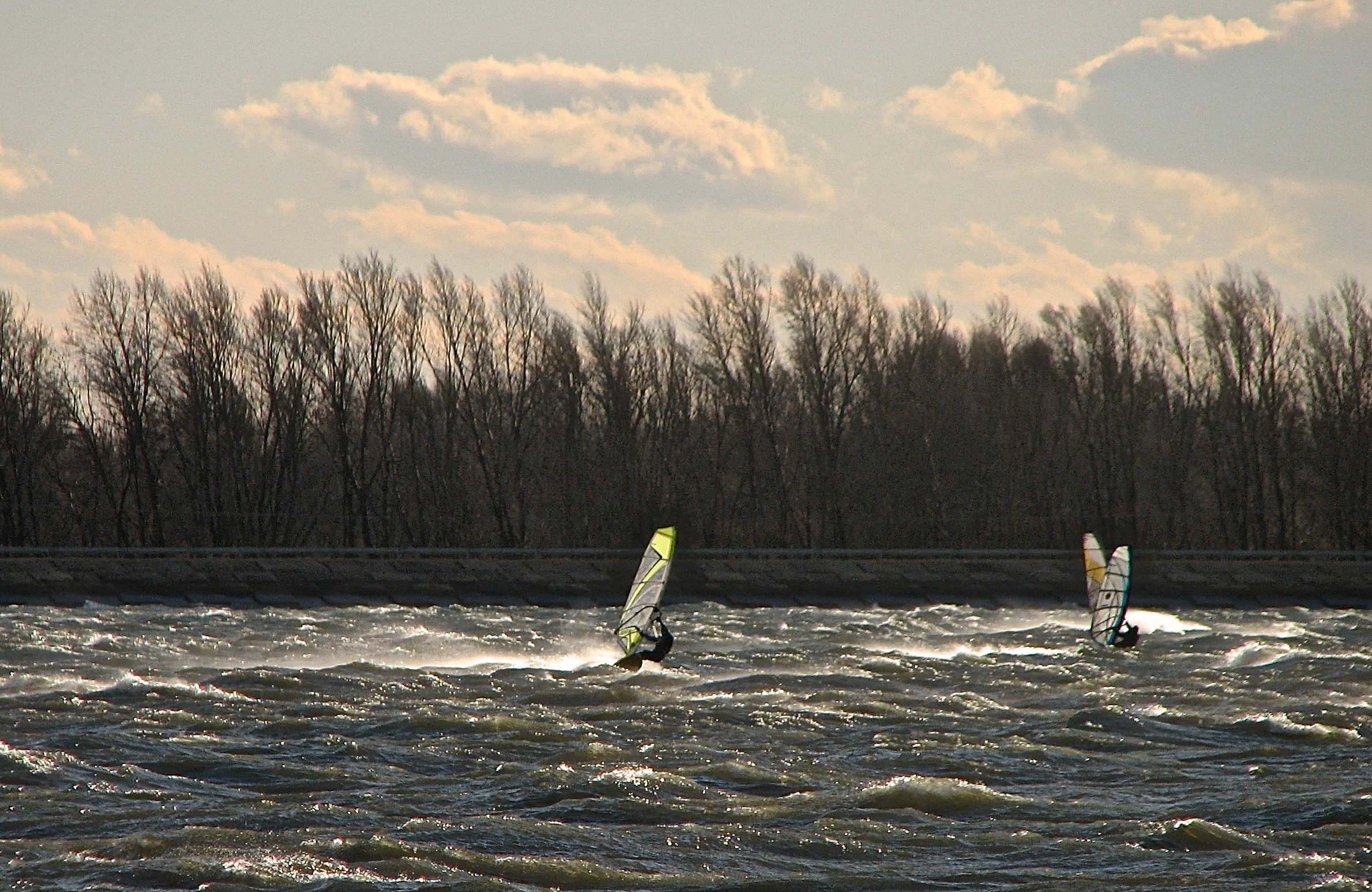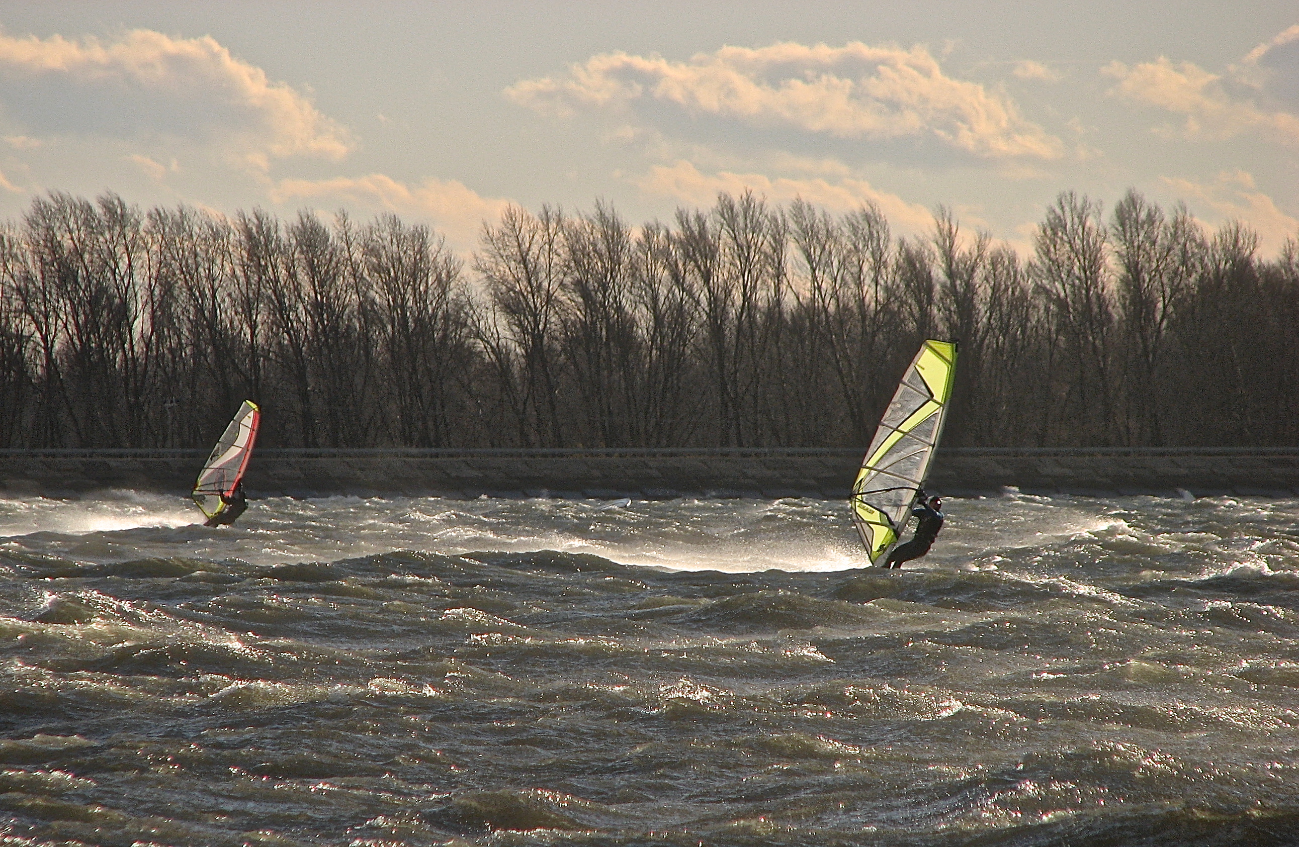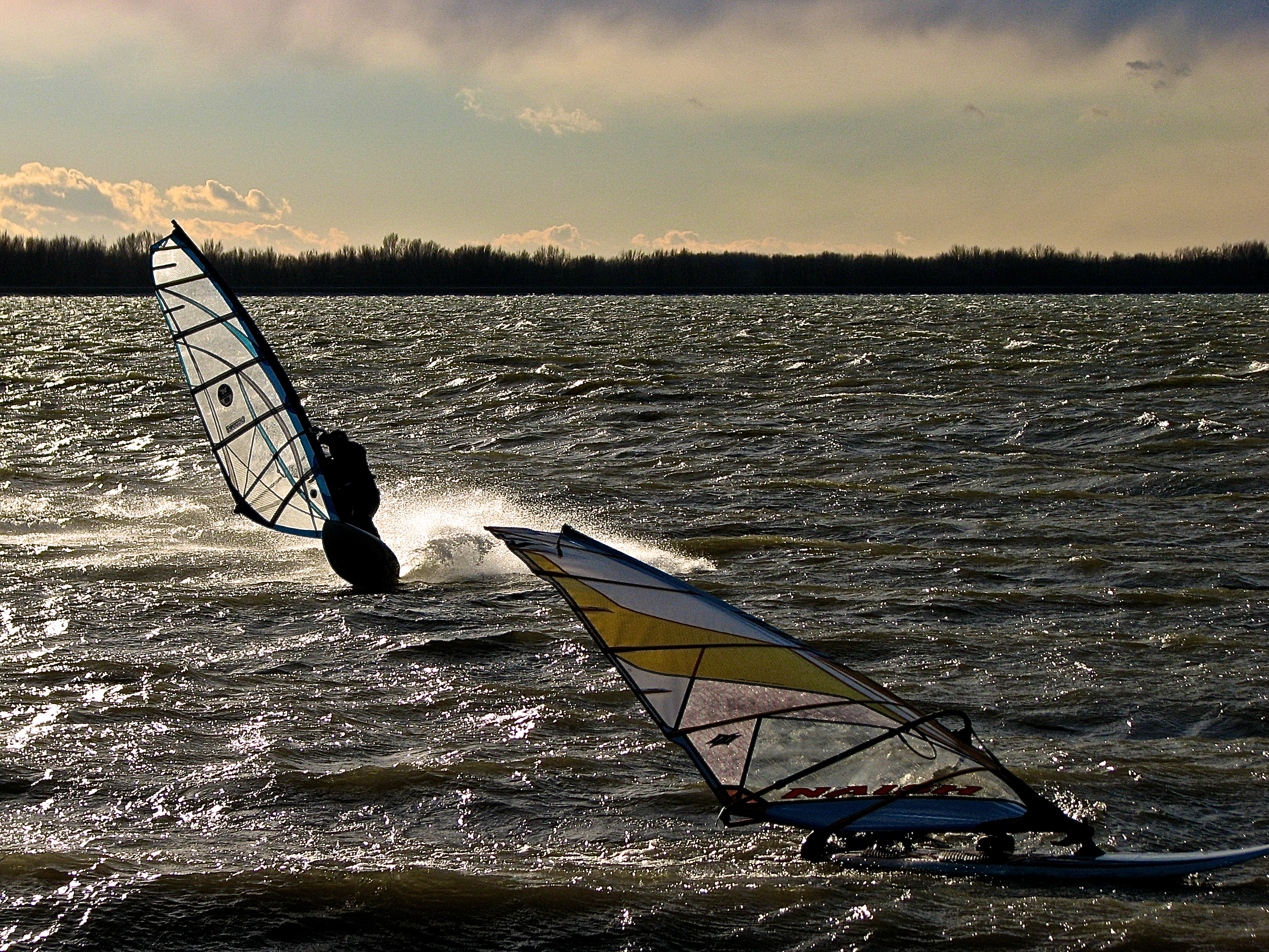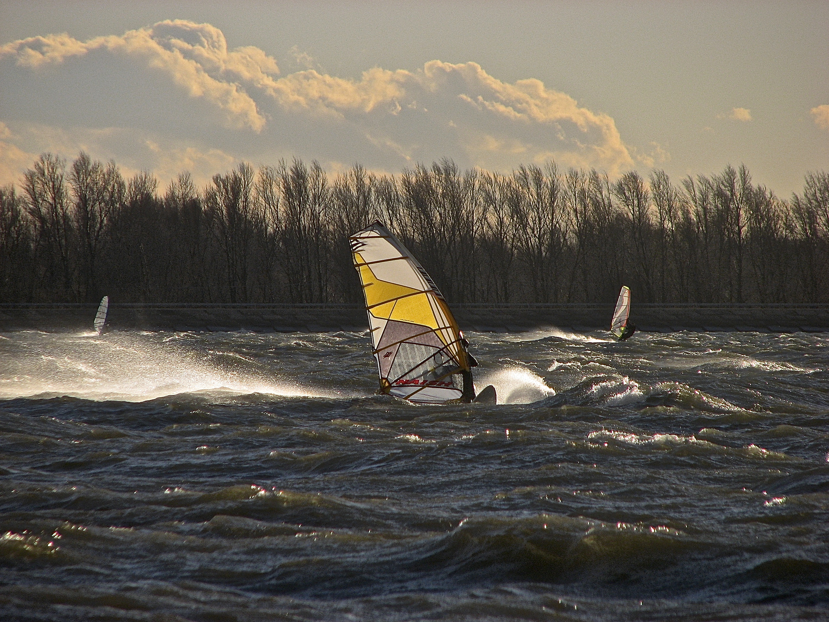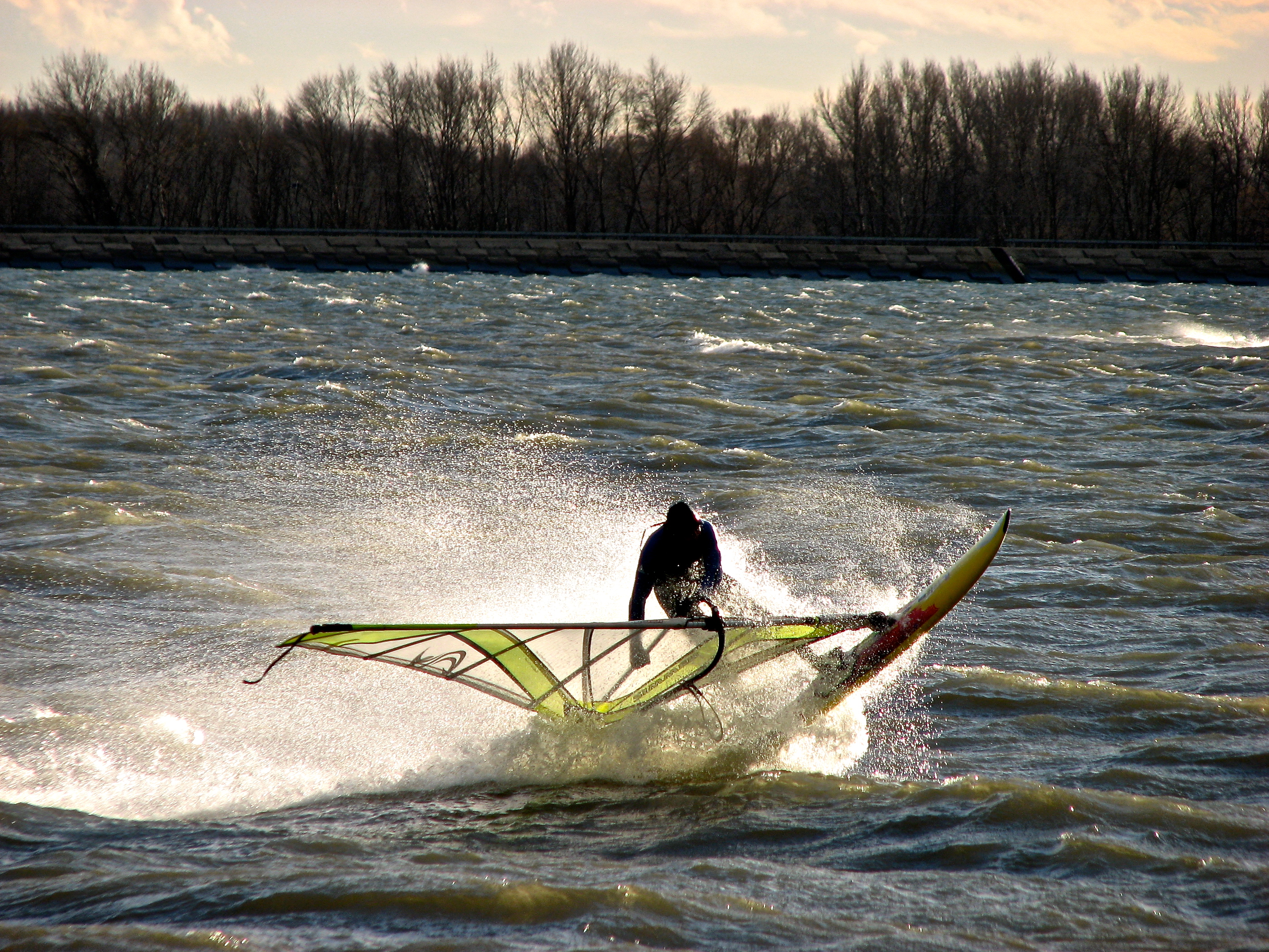 Vietor 8-20 metrov za sekundu..5 stupňov nad nulou..Ideálny deň na windsurfing!