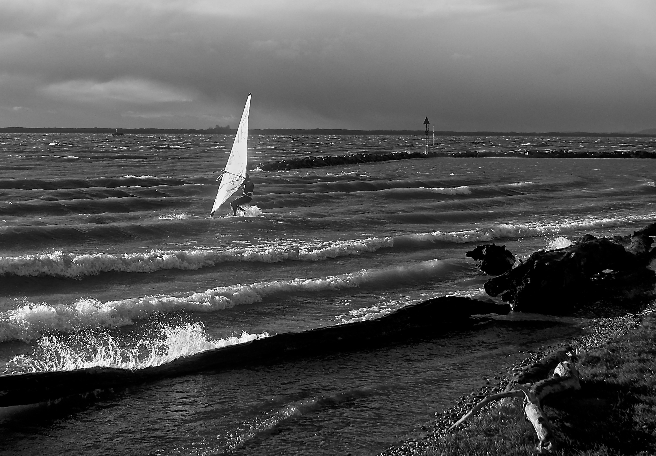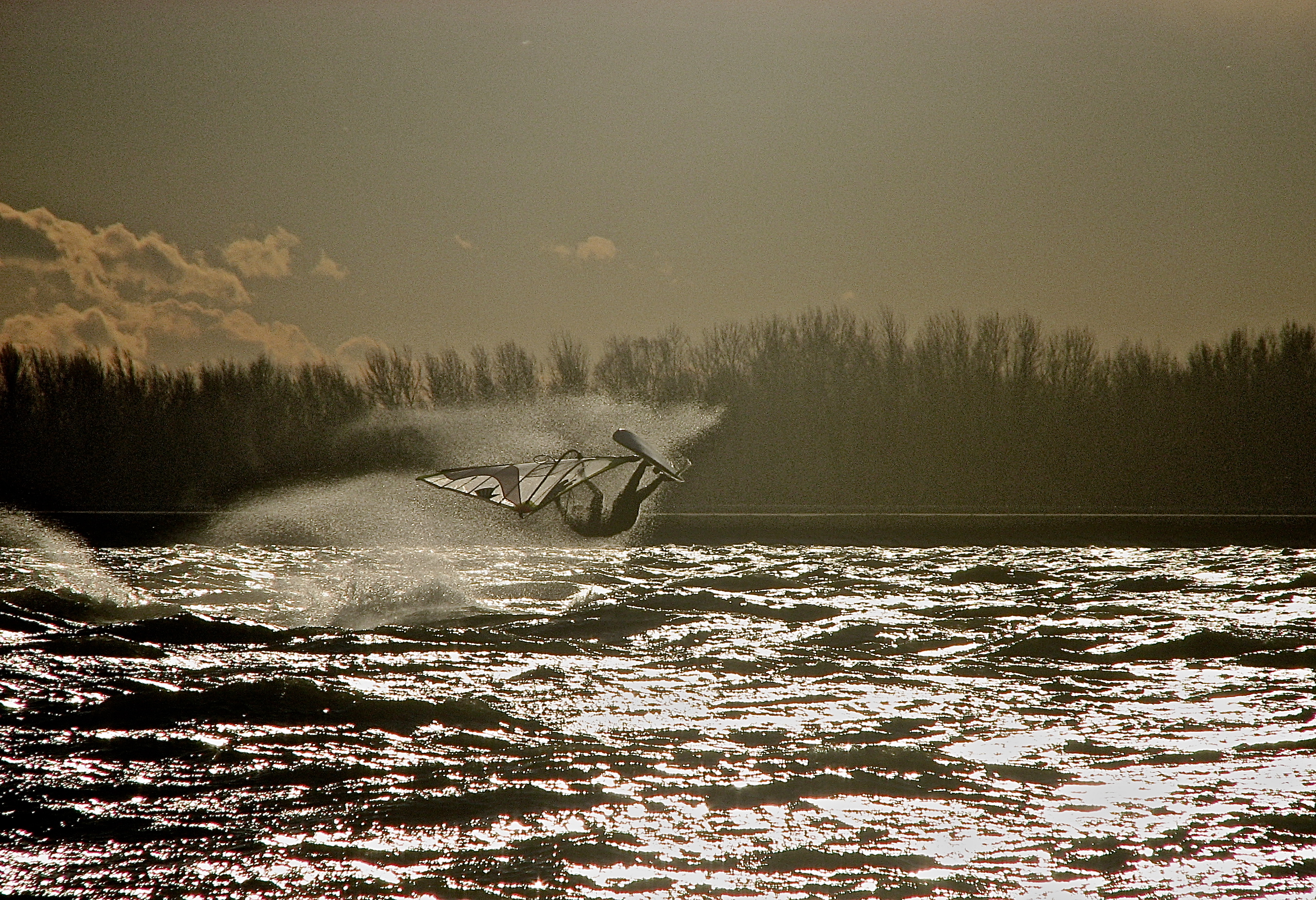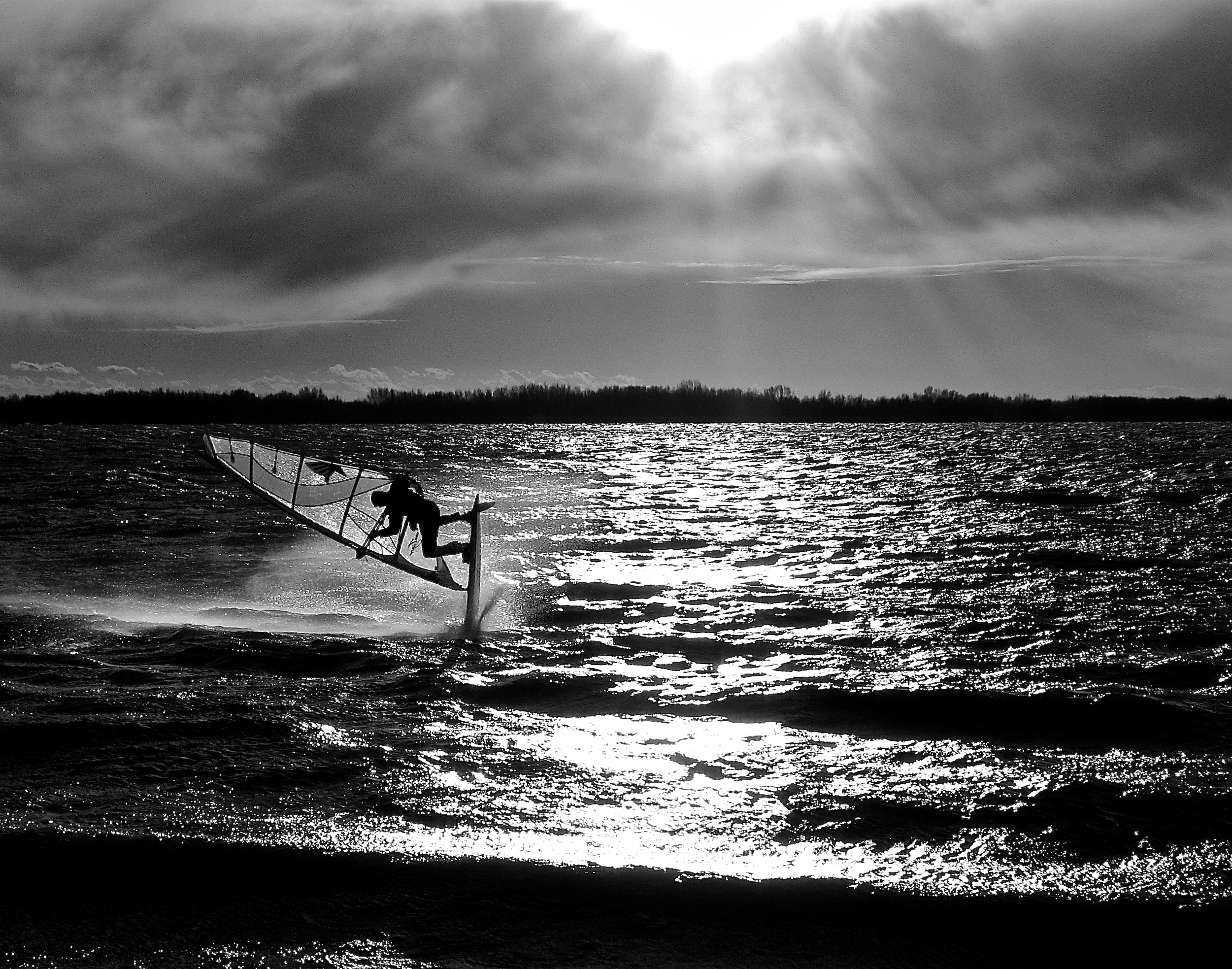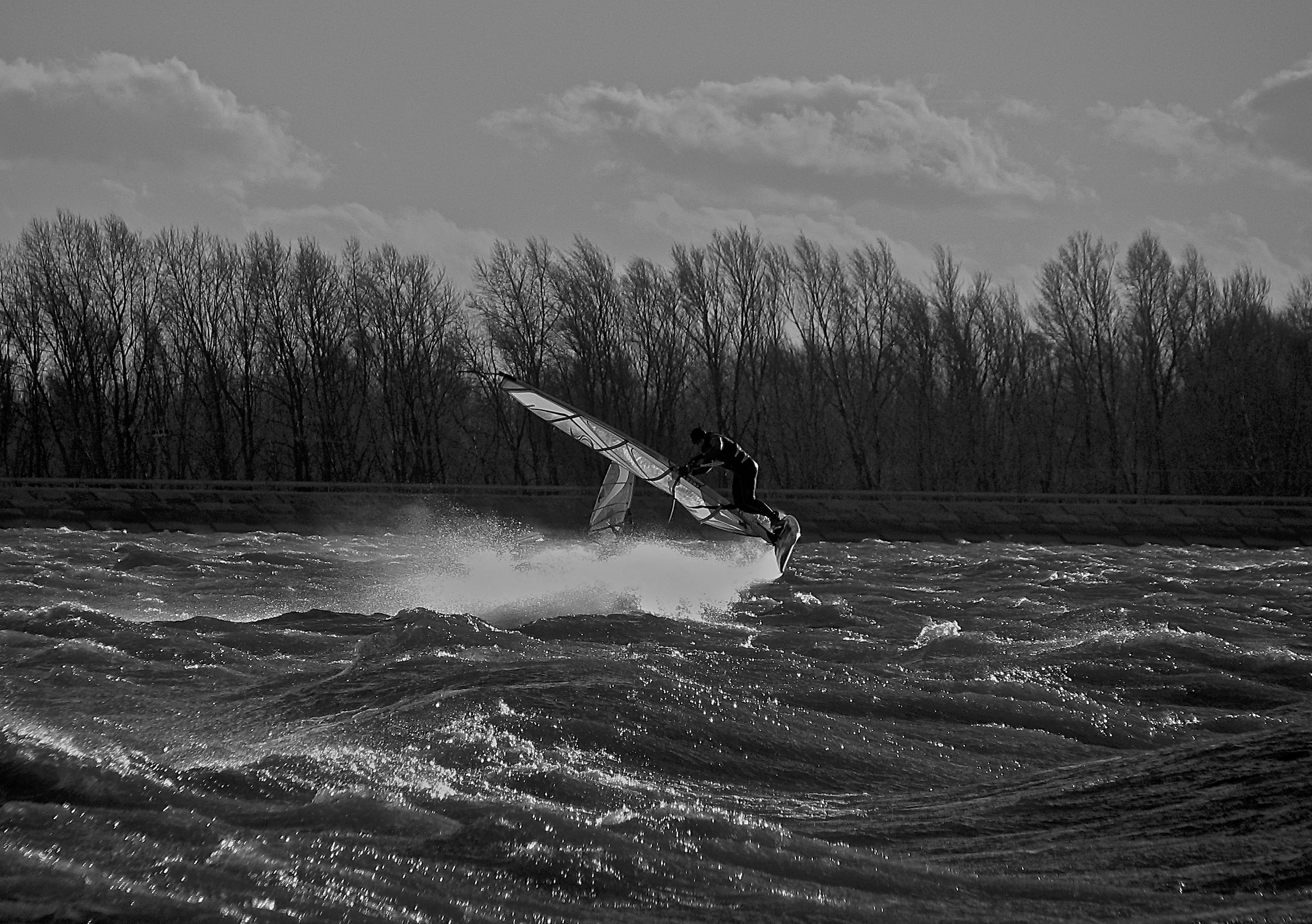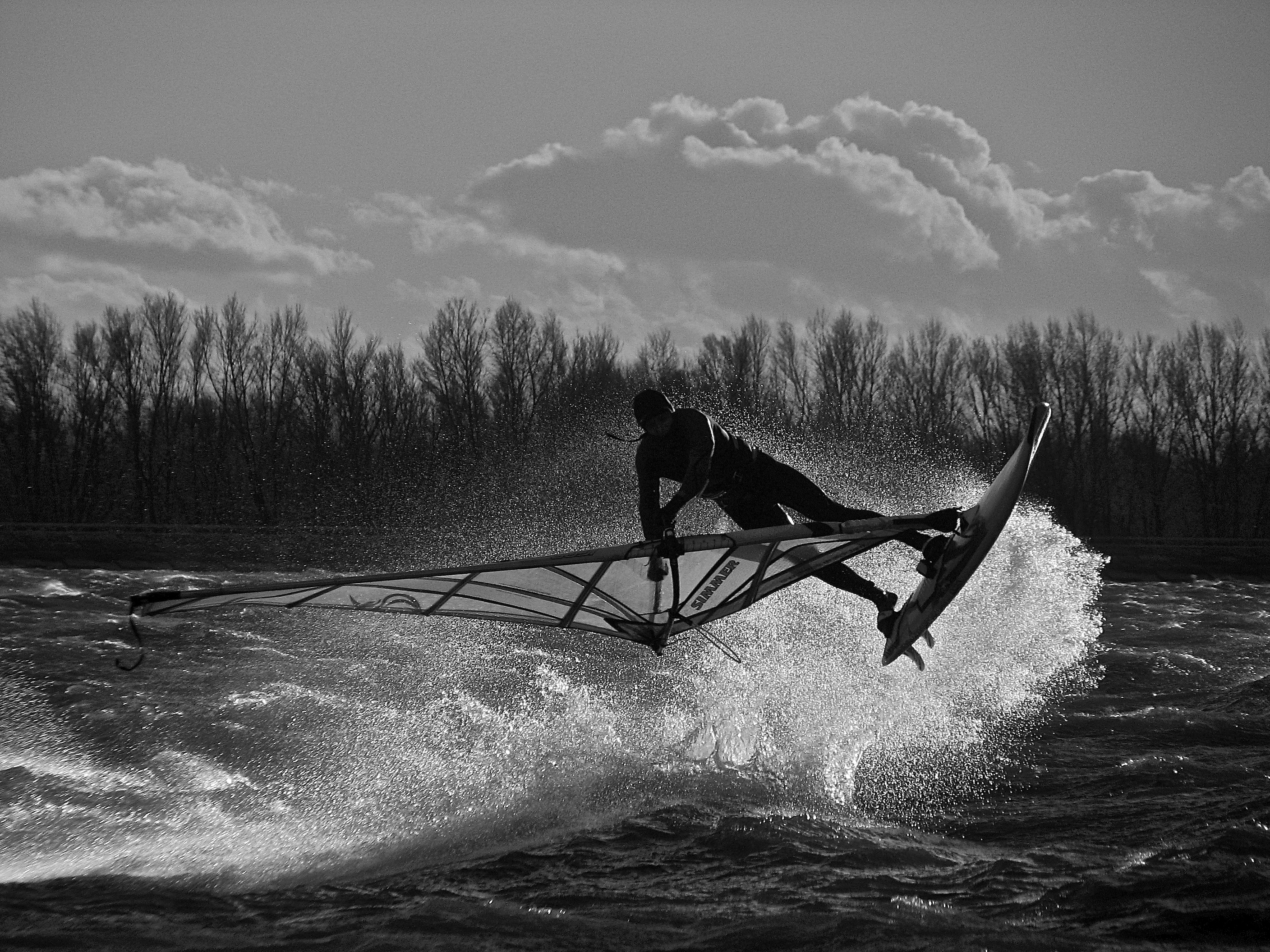 Vietor 8-20 metrov za sekundu..5 stupňov nad nulou..Ideálny deň na windsurfing!