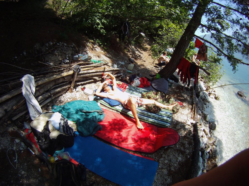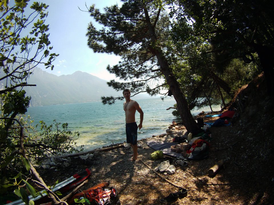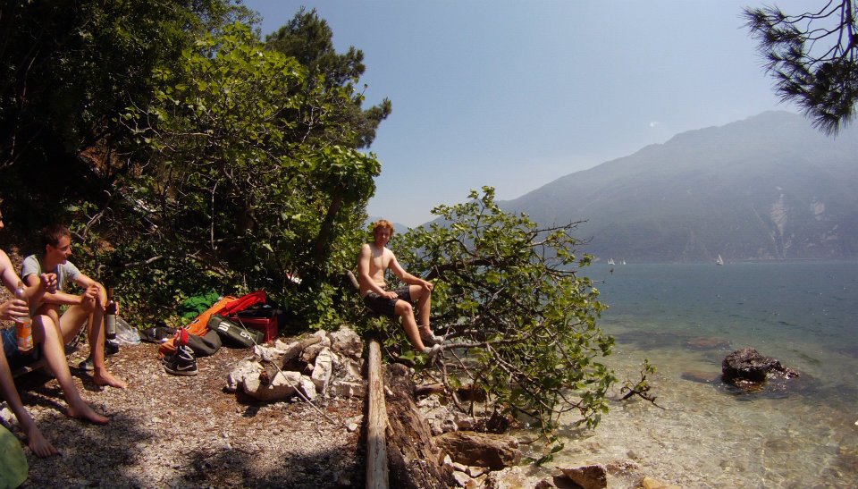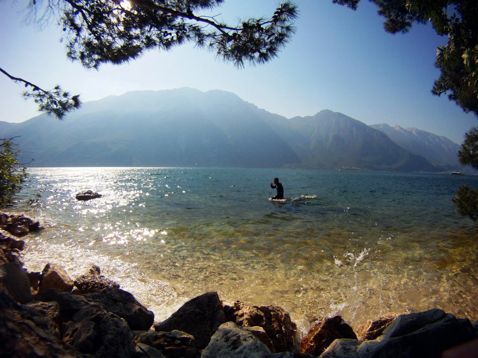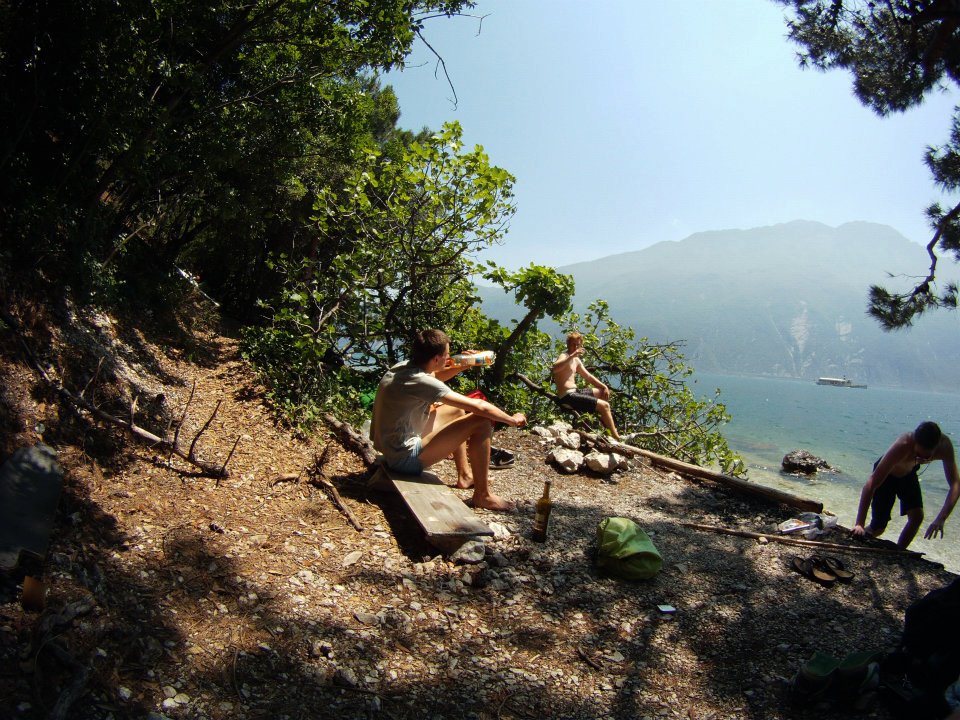 Vyrazili jsme v 5 kouscích: Dejv, Peaceman, Kozzy, bratr, a nesurfař Filip. Zakotvili jsme jako vždy na našem secret spotu u borovic. Podmínky nebyli úplně ideální, bylo sice teplo ale právě že všude a to i v horách což není ideální, takže to nebylo naložený tak jak by mělo ale 5,0-5,6 jsme pojezdili (2 raní a 2 odpolední). Asi největší událostí byla ale sobotní mega big Party v centru Torbole kde se konal jaký si DnB festival na pláži a hlavně pak after party ve Wind´s baru v centru.